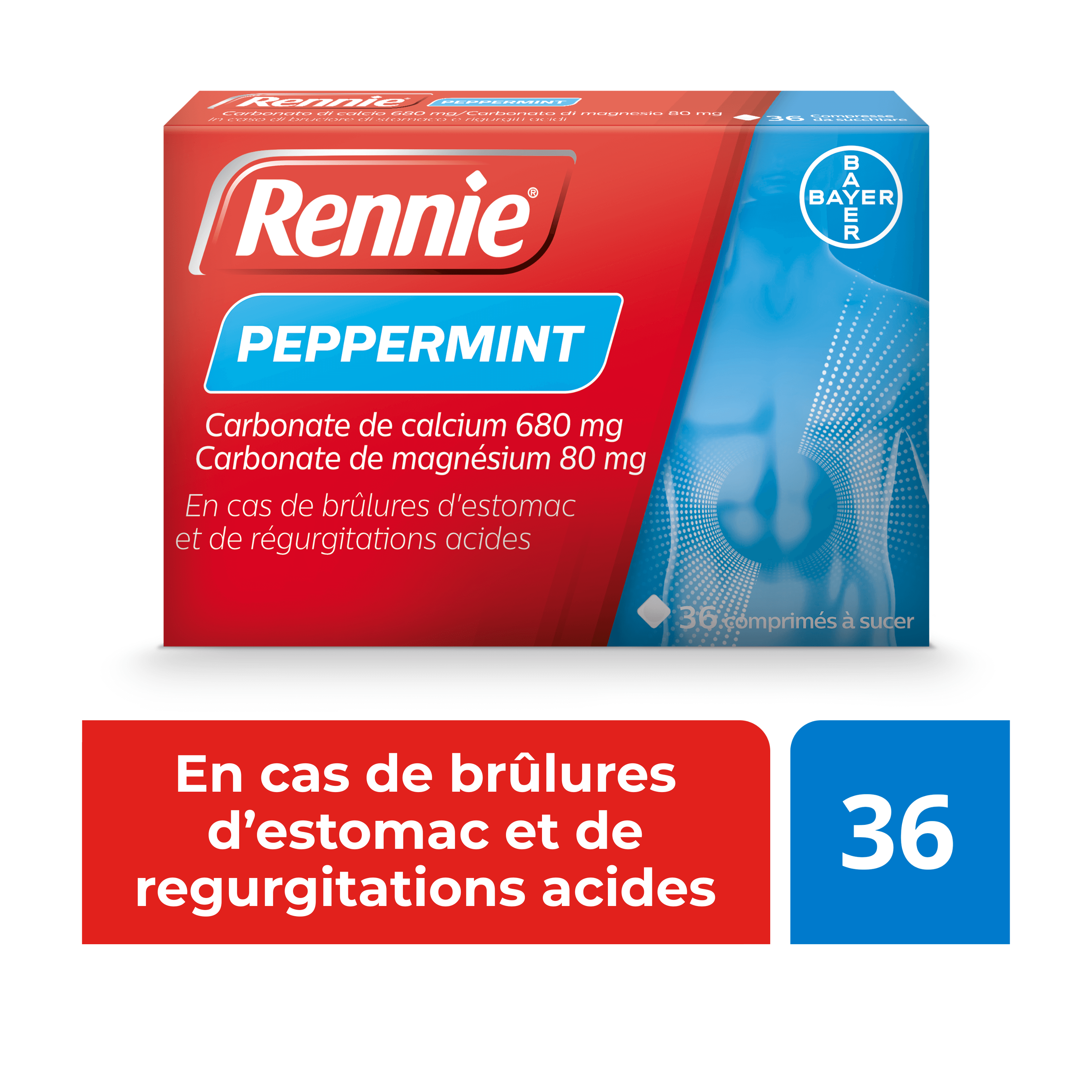 Rennie® Peppermint agit directement dans l’estomac en transformant l’acidité en eau et en d’autres substances.